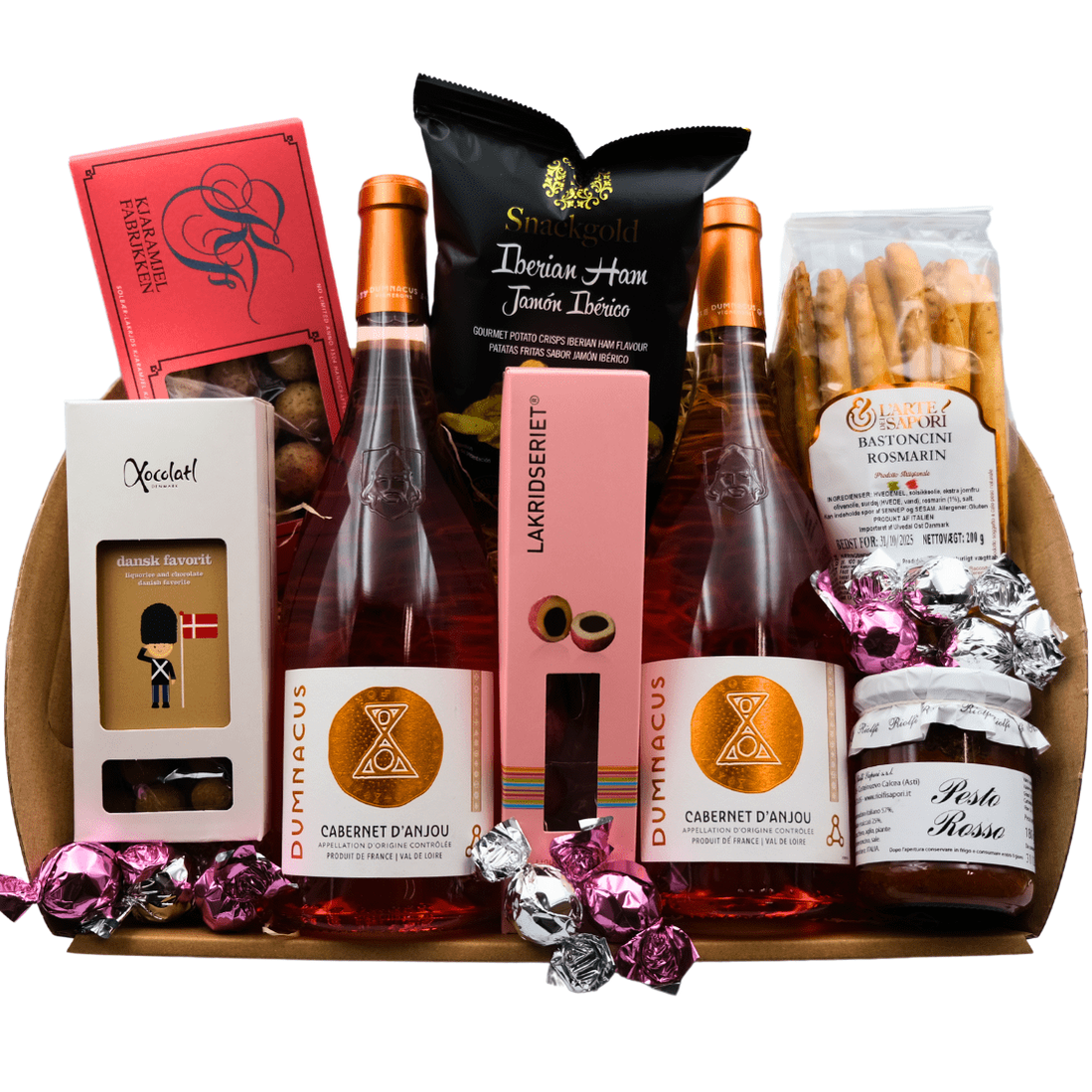 Oplagt gavekurv til livsnyderen, gourmetpersonen eller som en ekstra luksuriøs værtindegave med alt det gode fra Europa.